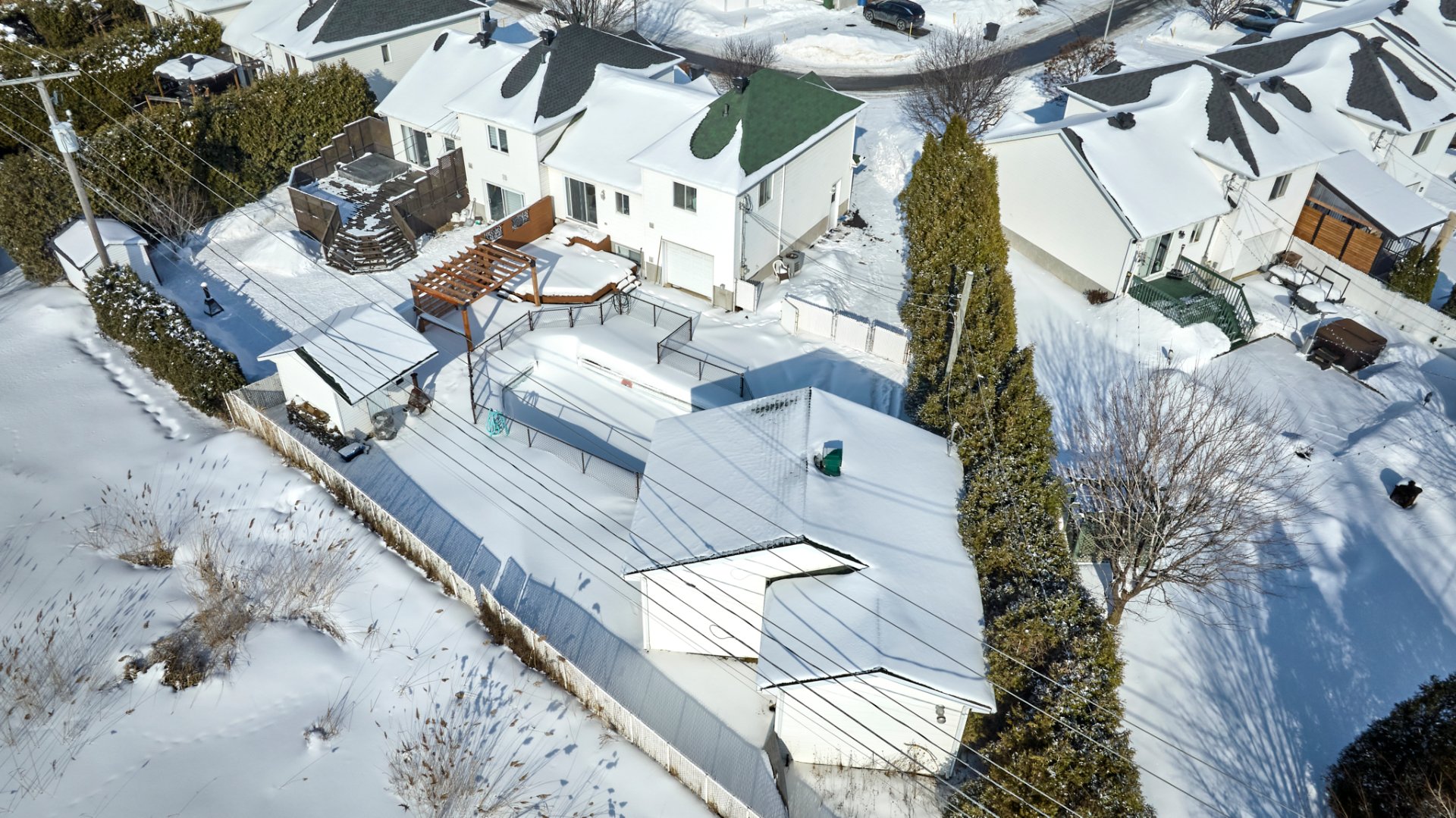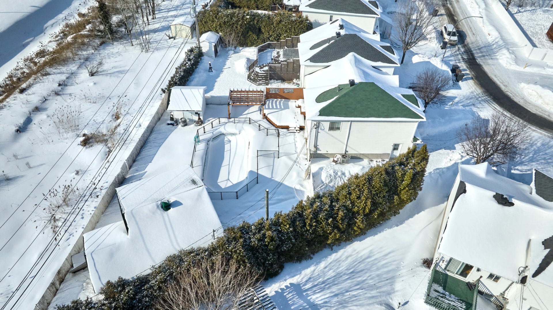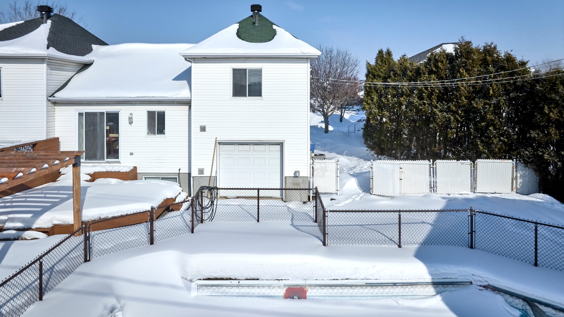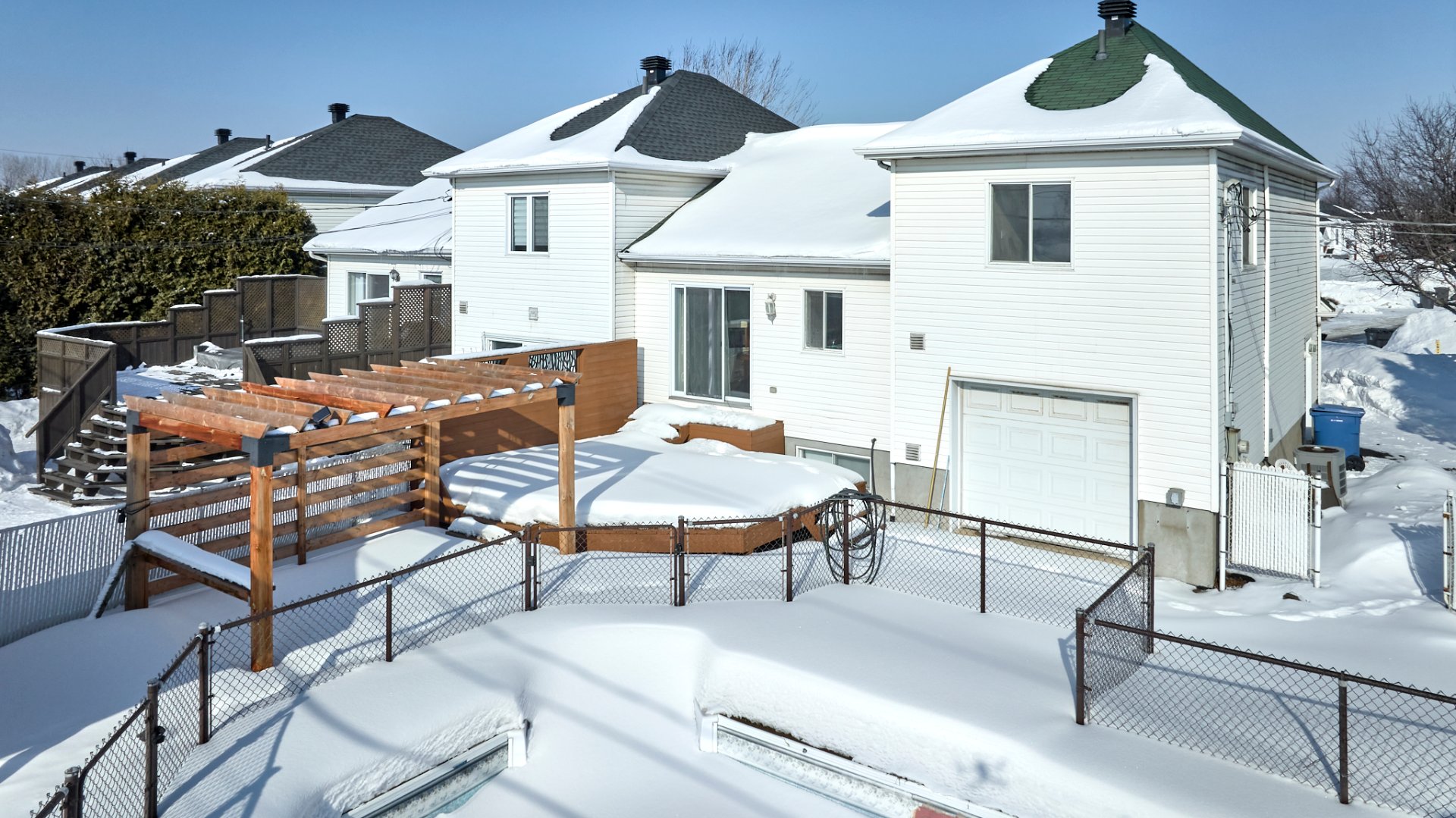 Inclus : Bacs à ordure, recyclage, composte, machine à Grinder dans le garage, pergola, aspirateur central et accessoire, foyer extérieur avec chaise en plastic, accessoire de piscine,Thermopompe murale